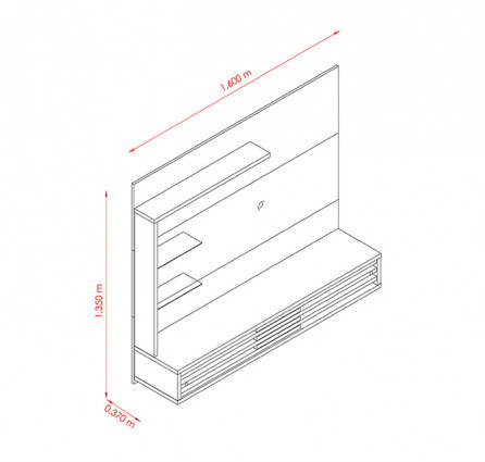 Produto desenvolvido para ser fixado na parede. O televisor deve ser fixado no painel.