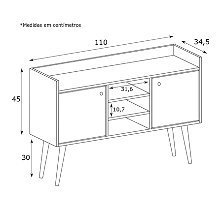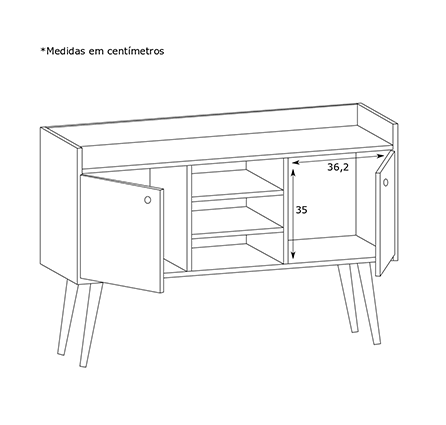 O buffet Chang é feito em melamina de 15mm, com acabamento em BP.