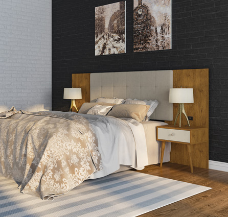 Com excelente design e um ótimo acabamento, ela se destaca com relação as demais cabeceiras por ser expansível de 1,40 à 1,60 metros, confortável e funcional e com visual retrô, foi criada de acordo com a necessidade do cliente. Principais características: Tomadas embutidas, criados embutidos e encabeçamento robusto.
