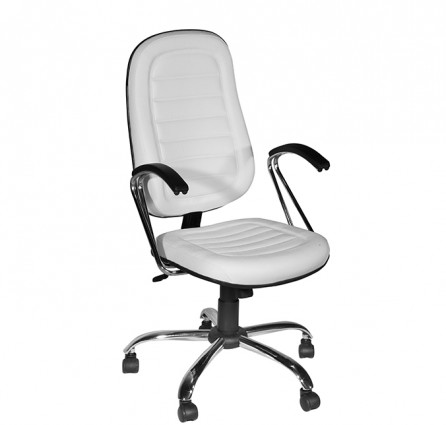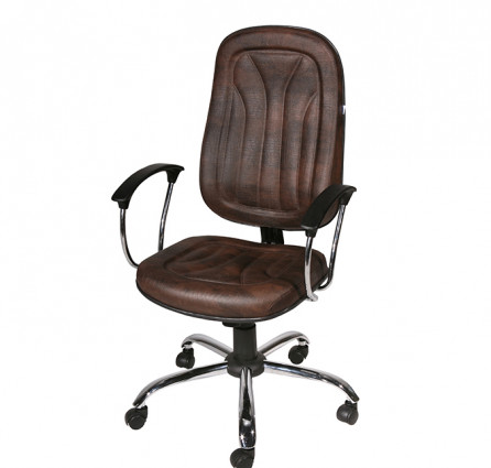 A madeira multilaminada de 14mm no assento e 12mm no encosto, unidas com chapa de aço, com vinco externo para garantir a segurança e travadas com parafusos sobre uma base de aço com mecanismo Relax. Coluna de pistão a gás. Base de aço cromado, braço cromado modelo y universal.