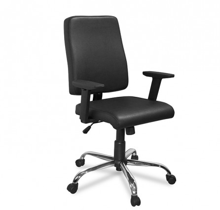 Os braços reguláveis com acabamento emborrachado possibilitam várias posições de ajustes, garantindo o conforto e a ergonomia. A base é de aço cromado. E o revestimento é em corano sintético de alta resistência.