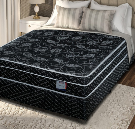 Colchão de molas Bonnel, com tampo em poliester com fibras de bamboo, Pillow Inn e lateral Jaquard.