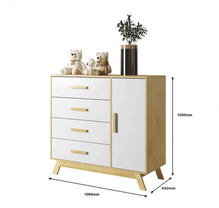 A cômoda Dudu Montessoriana 04 gavetas, faz parte da linha infantil da Rodmoveis, com a matéria prima principal MDP, o acabamento é com pintura UV, que deixa o produto com o acabamento perfeito, produzida especialmente para nossas crianças, possui 04 gavetas, 01 porta, 01 prateleira, puxadores e pés em madeira maciça. Ideal para bebês até adolescentes, o quarto se torne mais divertido e atraente aos olhos da criança!