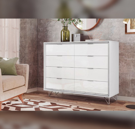 Seu quarto de cara nova e com qualidade extra. Cômoda Premium, com pés de aço, corrediças telescópicas e puxadores cromados.