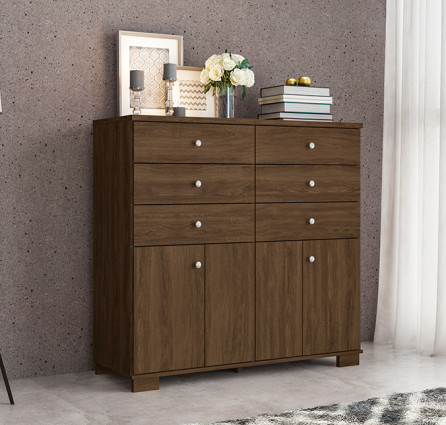 A cômoda com 06 gavetas e 02 portas Top Plus da Robel possui design moderno e inovador! Estrutura em MDP, 06 gavetas e 02 portas, pés inclusos, corrediças telescópicas e excelente aproveitamento interno.