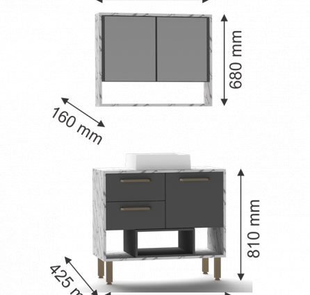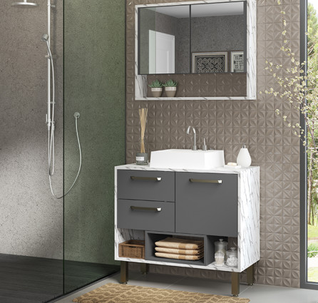 O produto conta ainda com espelho de 3mm e 01 prateleira.