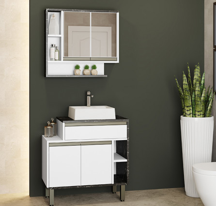 O produto conta ainda com espelho de 3mm e 02 prateleira.