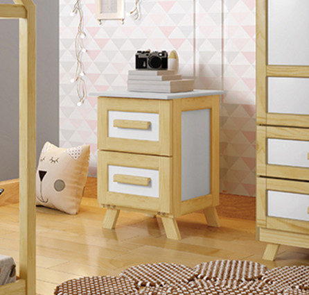 Super versátil, compacto e pratico. Ideal para quem gosta de comodidade, o criado Jequié Kids, faz parte da linha infantil da Rodmoveis é produzida com madeira reflorestada (pinus) e HDF, pintura interno e externo UV, com 02 gavetas, possui corrediças metálicas, puxadores e pé em madeira maciça. Que tal adquirir para compor o quarto de seu filho ou filha?!?