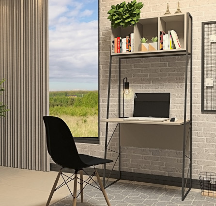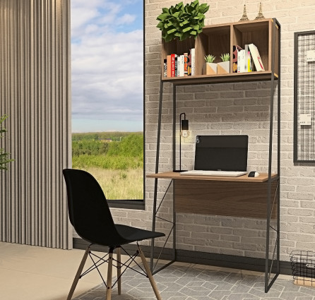 Escrivaninha com estrutura metálica em epóxi preto Nova Iorque Metta Móbili ES4001.