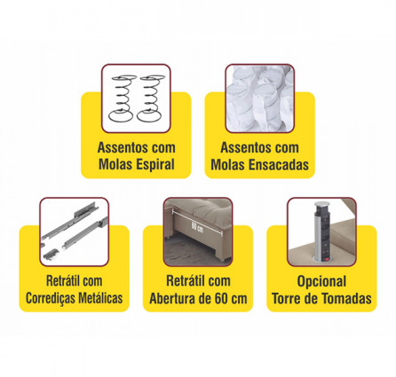 Estofado Lazio retrátil e reclinável com assentos com mola ensacadas e fibras siliconadas, o que permite um superconforto.