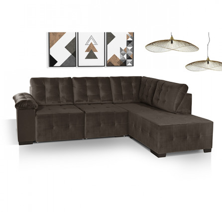 Estofado canto, 02 assento retrátil , a peça chis fixa, com fibra, com espuma d28.