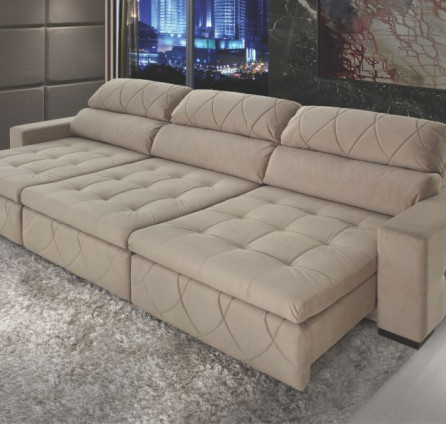Estofado Milão com assentos retrateis que abrem 60cm, com detalhes marcantes este estofado deixa o ambiente elegante e aconchegante.