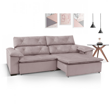 Encosto reclinável, assento retrátil, com espuma soft, manta revestindo a espuma, encosto com fibra