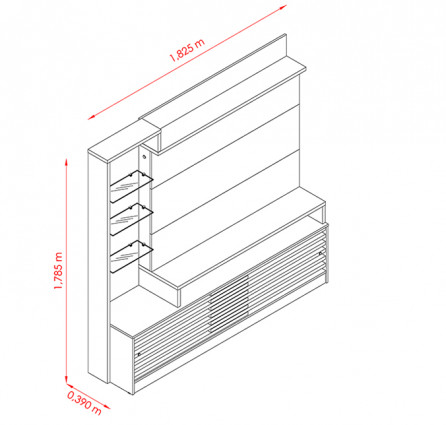 Com 1825mm de largura, ele se destaca por suas prateleiras de vidro e LED.