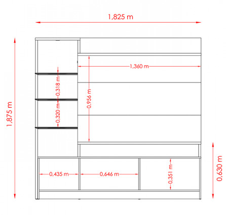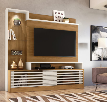 Já seu tampo, laterais e prateleiras de 25mm ficam encarregadas de transmitir robustez ao móvel.