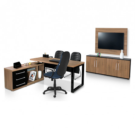 Tampo da mesa produzido em MDP/BP em tamburato de 40mm, com acabamentos nas faces do painel em fitas de bordo em PVC, aplicadas com cola hotmelt na mesma cor dos tampos. A estrutura da mesa é produzida em material de aço carbono com tubos de dimensões de 40 mm x 60mm com chapas # 1,20. Com tratamento antiferrugem e unificados por soldas TIG/MIG, e acabamentos para receber a pintura em PU. Proporcionando beleza e resistência ao produto.