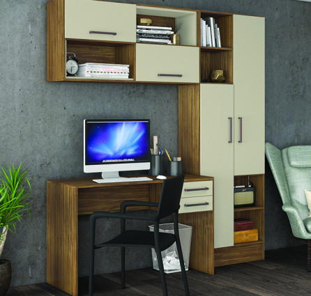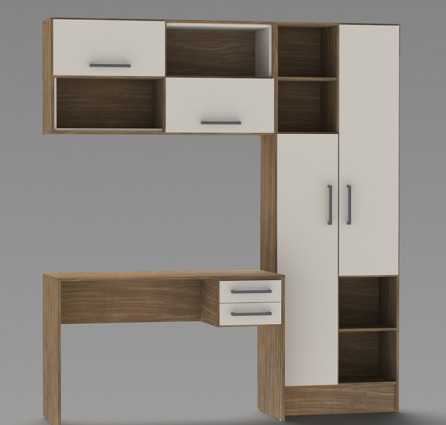 Possui 04 portas e 02 gavetas, com dobradiças de 25mm zincada caneco, corrediças metálicas e puxadores PVC ônix.