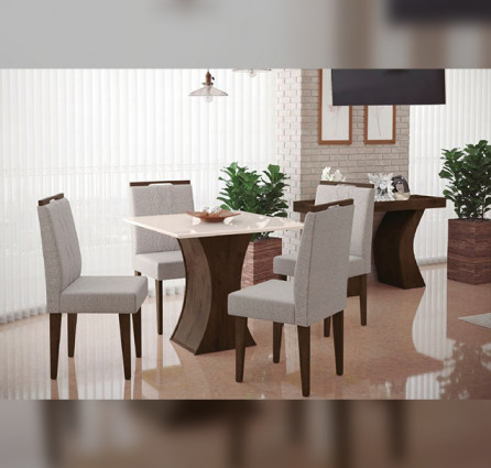 Além disso, seu design é ideal para salas de jantar com espaços reduzidos e suas medidas permitem acomodar 4 pessoas confortavelmente.