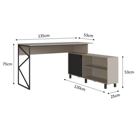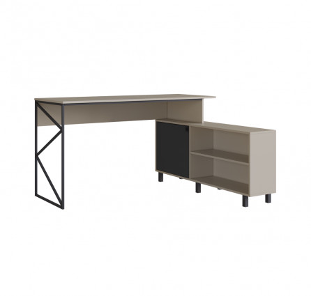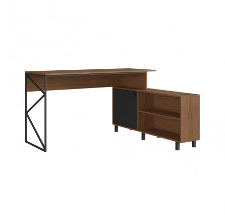 Mesa em L com estrutura metálica em epóxi preto e nicho lateral Office Deli Metta Móbili MO2113.