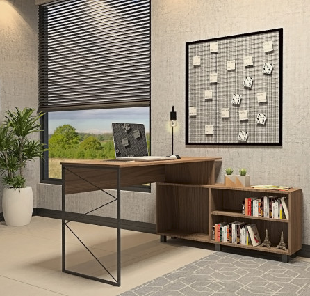 A mesa Office Deli, da Metta Móbili, apresenta um design moderno com sua configuração em L, o que proporciona conforto e praticidade no momento de trabalhar ou estudar