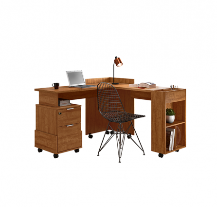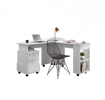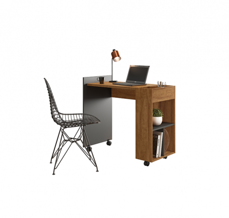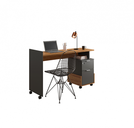 O Office Alessa tem tampo em MDP de 25mm. Conta com rodízios e puxadores cromados, além de gaveta com chave.