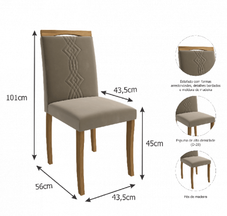 Medida da Cadeira/Banco (A x L x P): 101cm x 43,5cm x 56cm.