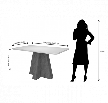 Medida da Mesa (A x L x P): 77,5cm x 80cm x 130cm.