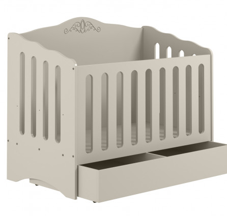 Berço 100% MDF, com bordas arredondadas, furação com regulagem de altura para o colchão, opção que vira cama, detalhe em baixo relevo, design moderno, certificado pelo INMETRO. Gavetão 100% em mdf com excelente acabamento interno, pintura com acabamento acetinado/atóxico, com divisória interna e rodízios.
